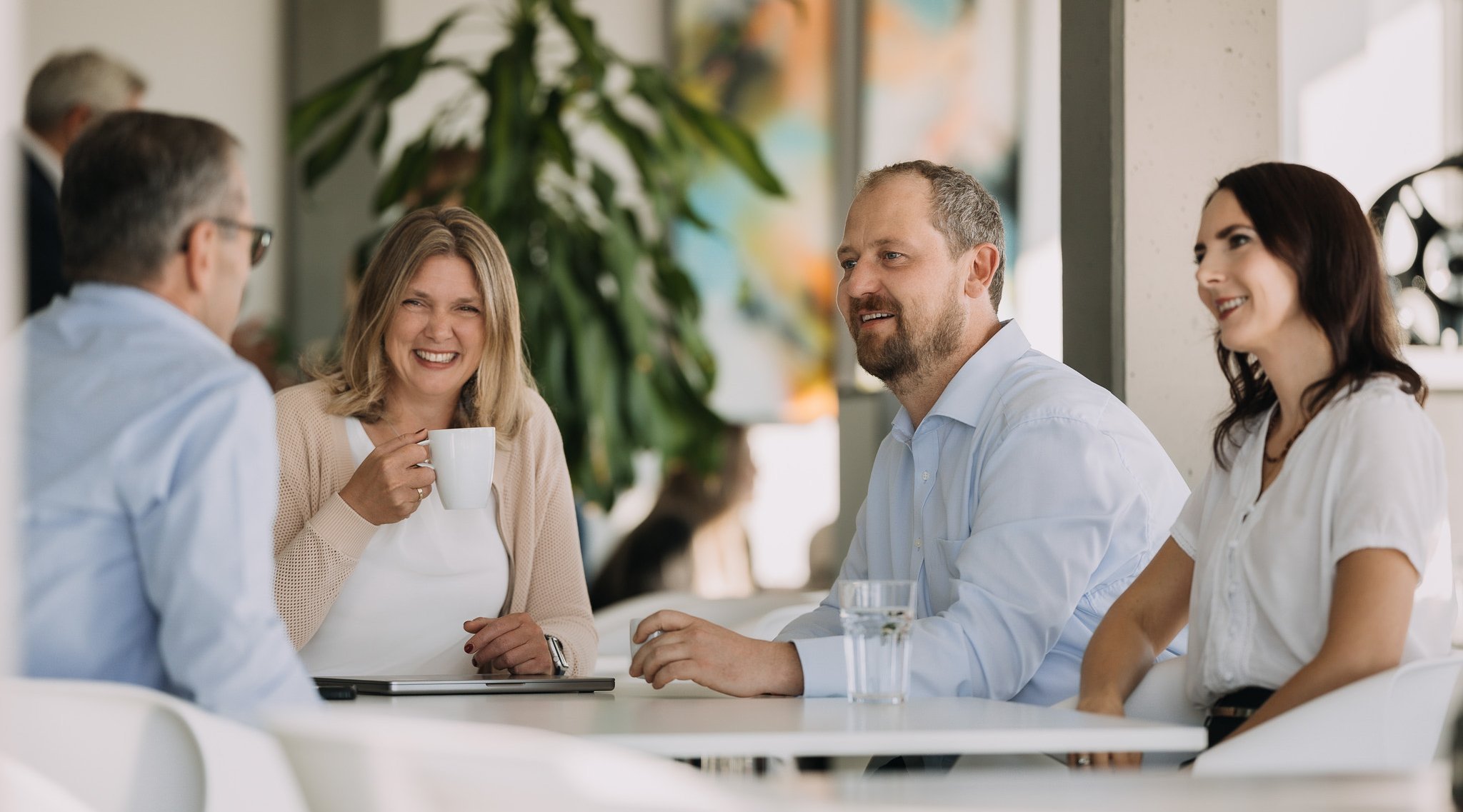 Hier trifft man sich, statt sich nur zu sehen – als Team, das miteinander denkt und arbeitet. Intern, im Projekt und gemeinsam mit unseren KundInnen.