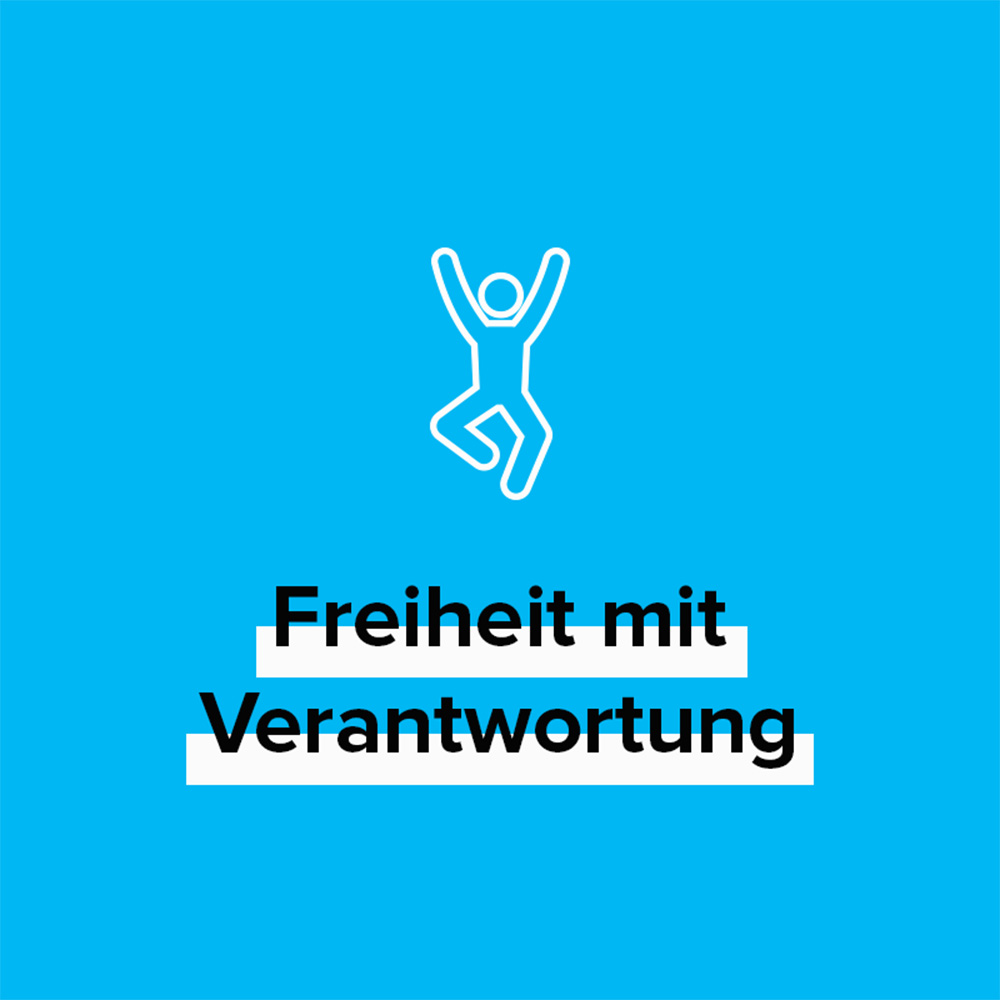 Freiheit mit Verantwortung ist der Kern unserer Zusammenarbeit. Du bekommst bei uns den Freiraum, den du brauchst, um deine Ideen umzusetzen und Wirkung zu entfalten – verbunden mit der Verantwortung, diese Freiheit sinnvoll zu nutzen.
